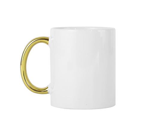 RubySub-tazas de café blancas con mango de oro, 11oz, sublimación de cerámica, venta al por mayor